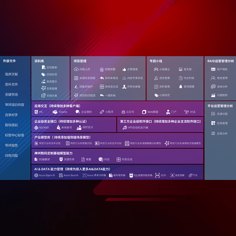 医疗器械产品上市前,,,,要熟悉严格与繁复评审标准,,,,整理分析监管机构指导文件中的海量信息。。。企业急需一个智能化解决方案,,提升知识管理效率,,,,提高评审通过率,,,,以提升其市场竞争力。。。